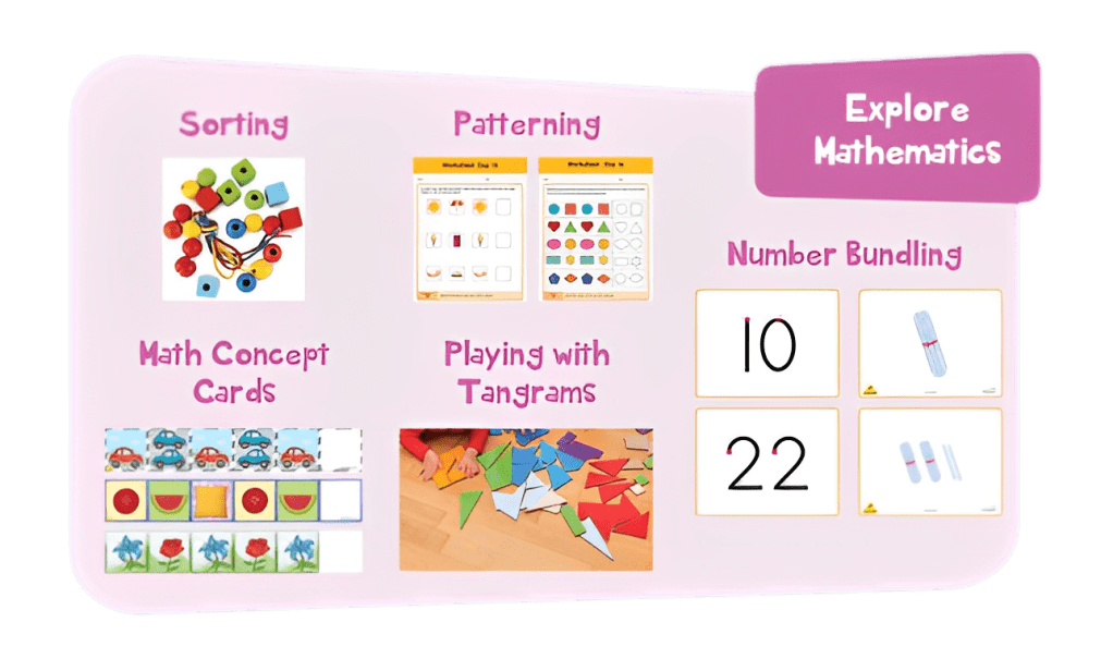 - Develops an awareness of dimensional shapes and spatial reasoning.